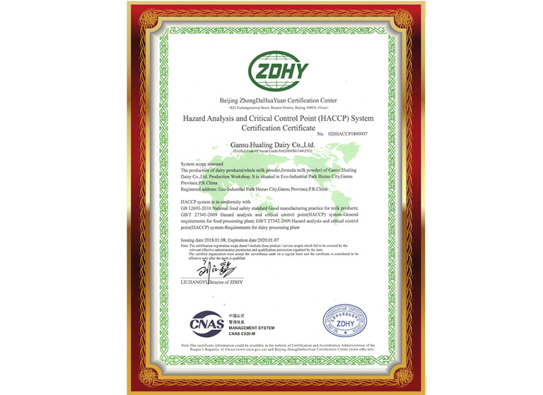 危害分析與關鍵控制點(HACCP)體系認證證書(英文版)